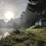 テラスでくつろげる寝室1室のOaza Las Zagozd 2 Olchowiec 別荘は、Olchowiecのビーチに位置しています。